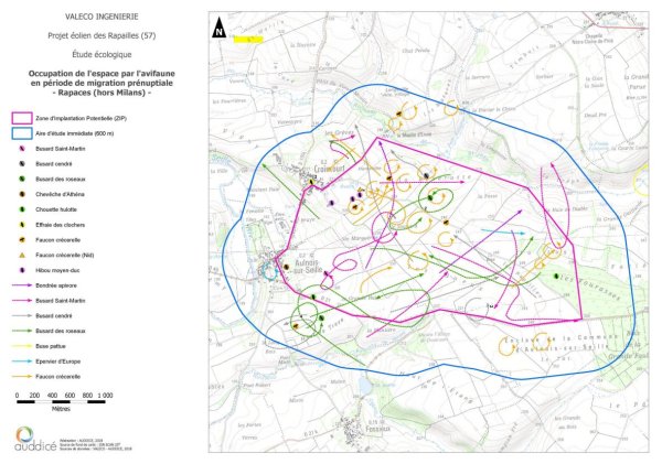 En l’occurrence, une sensibilité certaine a été identifiée au niveau écologique pour le projet. En effet, de nombreux rapaces ont été observés en période de migration (comme le montre la carte ci-dessous).